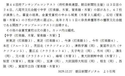 先日の吹奏楽部員が参加し、金賞を受賞させて頂きましたアンサンブルコンテストの記事が新聞に掲載されていました。