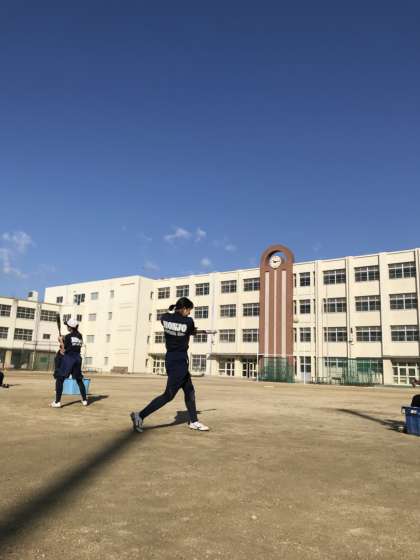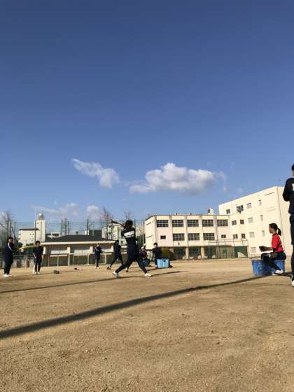 グラウンドではソフトボール部がバッティング練習をしています。日頃の練習の成果は飛距離に出ています。