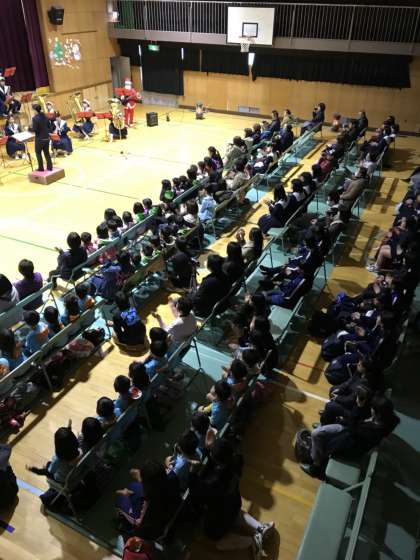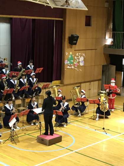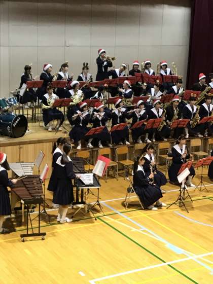 本校吹奏楽部によるクリスマスコンサートが始まりました。楽しみにしてくださっていた、近隣幼稚園や小学校、お年寄りセンターなどの療養施設の方々など、多方面から沢山のお客様に来ていただいています。