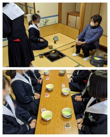 本日、茶道部は日高先生に来て頂いてお稽古をしています。今年最後のお稽古なのでみんな頑張って覚えています。