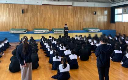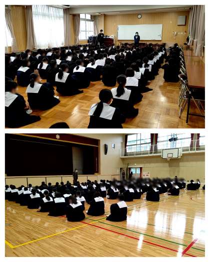 勉強面、健康面、生活面の観点から学年の色々な先生からお話をしてもらって充実した冬休みを過ごせるようにしています。