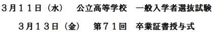 公立高校一般入試や卒業式は予定通り実施いたします。
