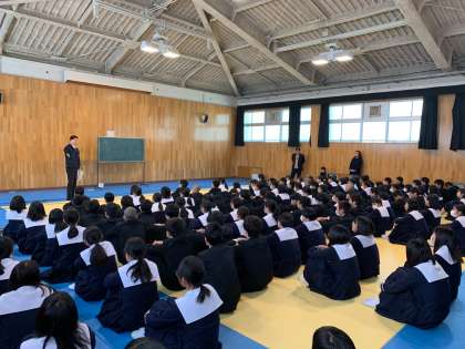 大阪に沢山の高校がありそれぞれの特徴やカリキュラムがある。そんな事を知った上で進路選択をして欲しいと言う言葉に大きくうなずく生徒も居ました。 -
