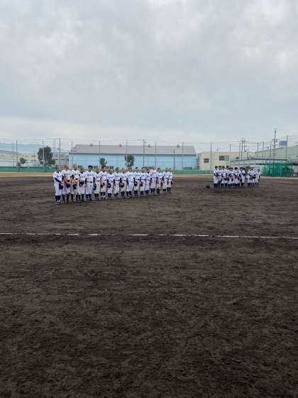 今日、野球部は、昨年5ブロック大会で優勝したので中河内地区大会の優勝校の東大阪市立縄手中学校との交流戦のため水走市民グラウンドに行ってきました。