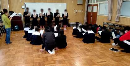 本日は男女あわせて合唱の練習をしています。とてもきれいなハーモニーになってきています。