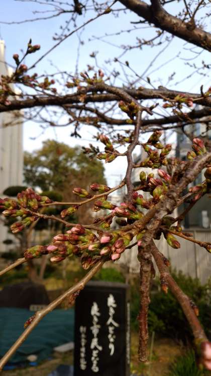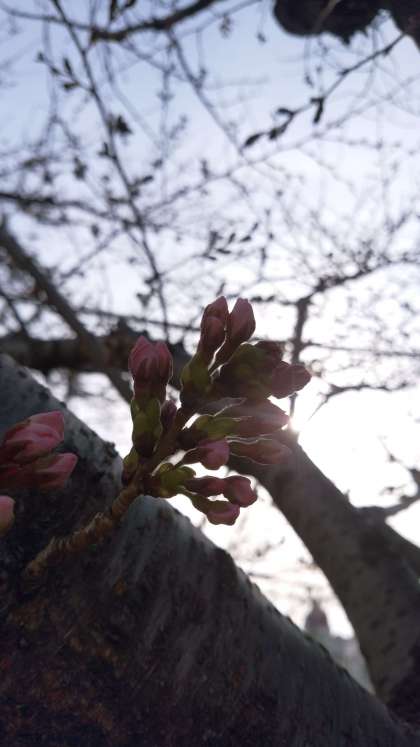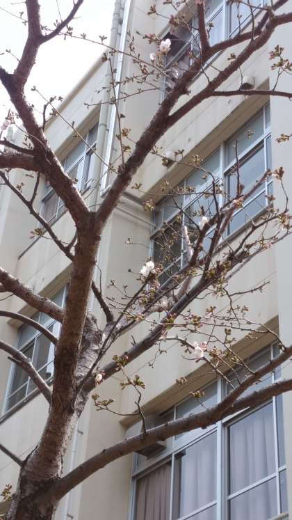 校内の桜のつぼみが色づき始めました。