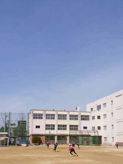 グラウンドではサッカー部とラグビー部が、練習を始めました。 -