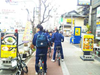 本日、生野中学校へは自転車で行っていました。午後3時半頃、今里交差点で解散しました。安全に気をつけて運転しルールやマナーも学んでくれています。