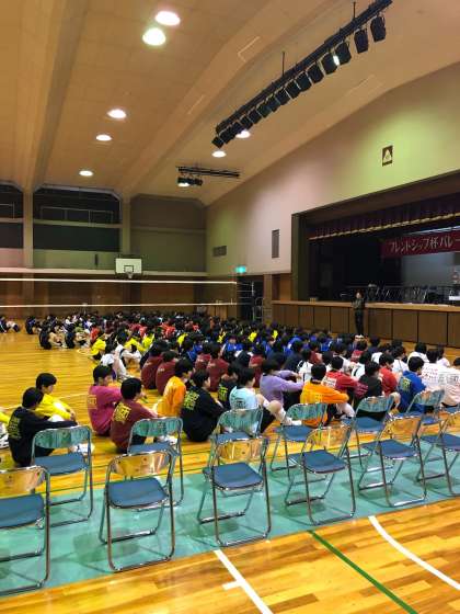 全16チーム参加していて、結果は午前中の予選リーグは25-8、25-11、25-11でそれぞれ曙川中、城陽中、東淀中に勝ちました。