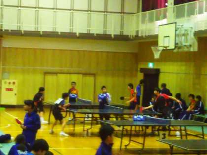 それでもよく頑張ってくれました。現在は、空いた台を使って他校と交流戦を行っています。