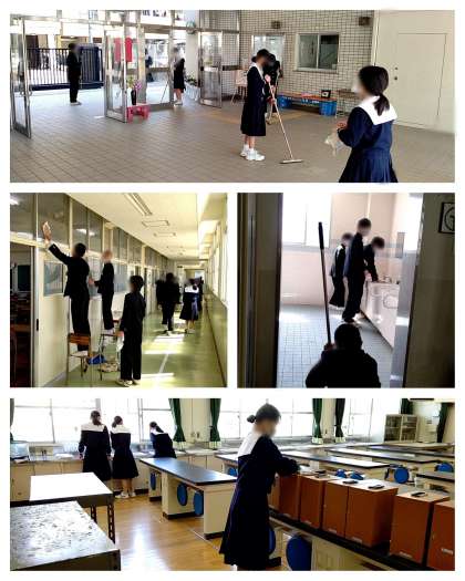 明日の今年度の修了式を前に、本日1年と2年生徒たちは、今年度最後の授業、学年集会、大掃除を行いました。