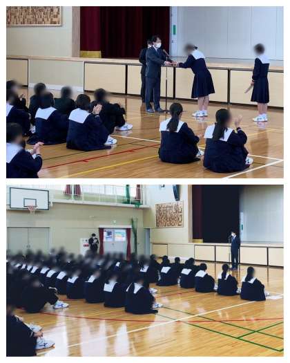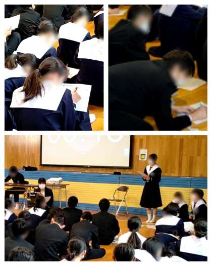 最後に生徒たちからサプライズで担任の先生に1年間の感謝のメッセージがあり、先生方もその生徒たちの気持ちを喜んでおられました。