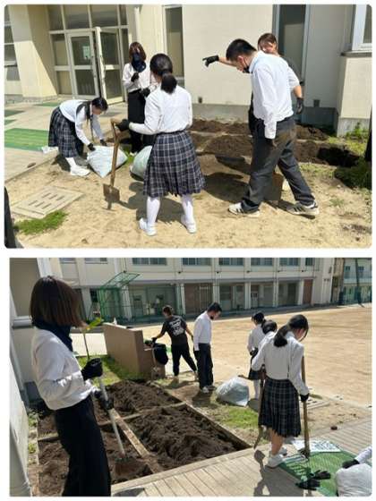 生徒たちは、土を耕したり形を整えたりしながら、協力して一生懸命に作業に取り組みました。自然とふれ合いながら、体を動かして作業する中で、達成感や楽しさを味わうことができました。