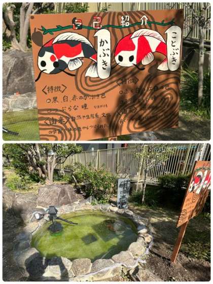 本校の美術部が、本庄中学校の池に池の名前と鯉の名前がわかる看板を設置してくれました。