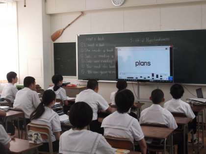 社会の授業でもICT機器の活用で、電子黒板を使っています。