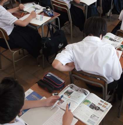 この時間は朝の学活の時間です。朝の勉強や読書を始める前に、一日の連絡をしています。(写真は3年生) -