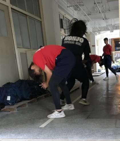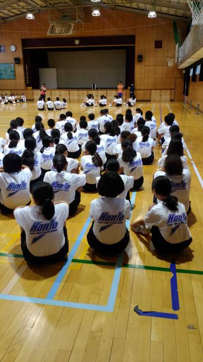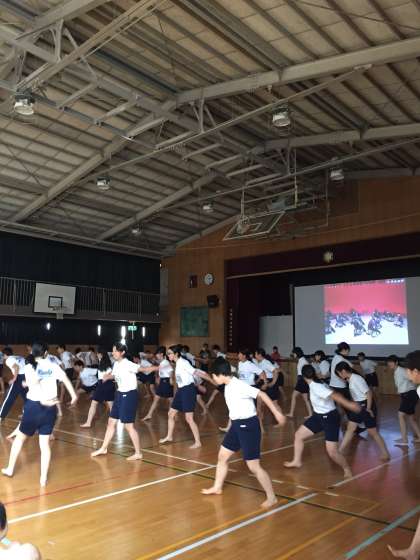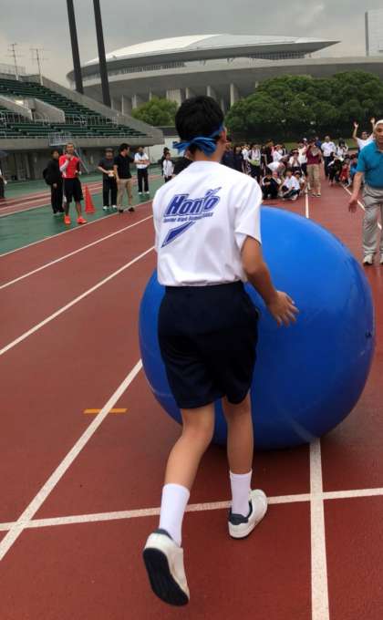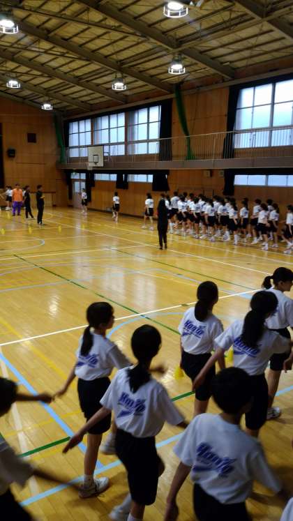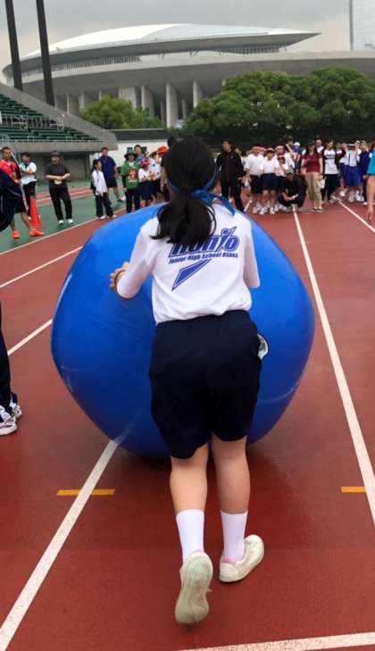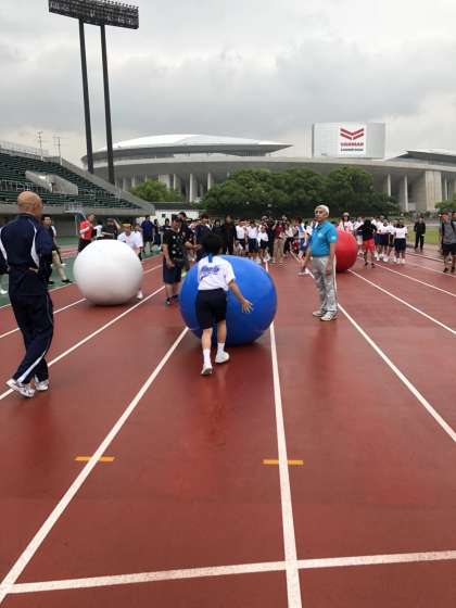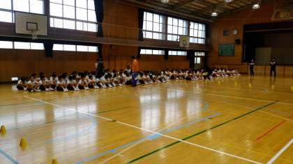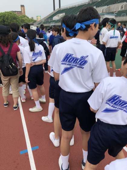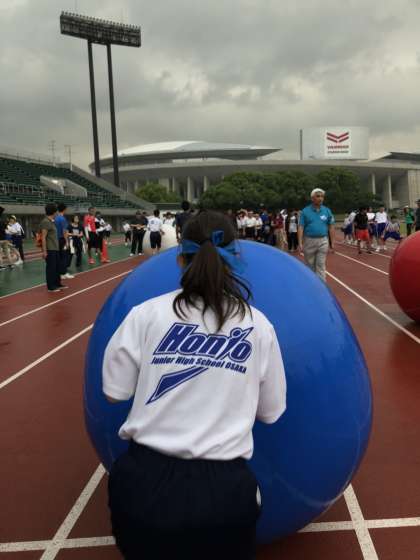 大玉ころがしに変更し、本庄中の生徒達は室内に入ることが出来ました。