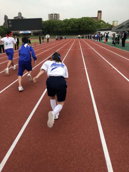 トラックの状態も良く、子ども達はイキイキと運動会を楽しんでいます。 -