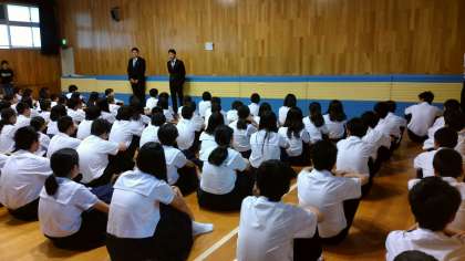 中学生の時の一生懸命。後からもっと頑張っておけばと思うことばかりです。今、様々なことをちゃんとすることがどれだけ大切かを伝えたくて、この仕事を選択し実習に来ました。という言葉を、生徒達は真剣に聞き入っていました。 -
