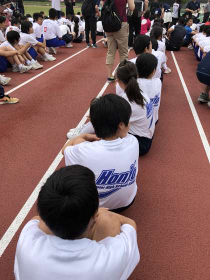 各種目ごとに集まったり、応援席の座る順番に座ったり。