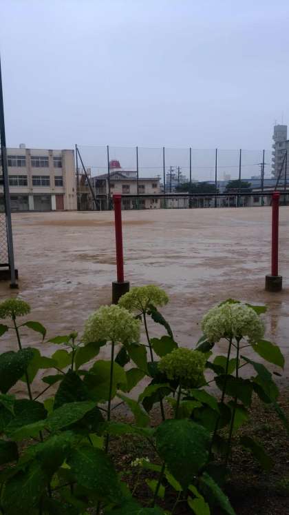 アジサイも雨の向こうの生徒達を応援しているようです。