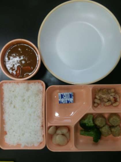 何とか温かいものをということで,カレーの配膳がレトルトカレーからTHERMOSの食缶による教室での分配という形に変わりました。熱すぎずちょうどいい温度で,一人宛の分配量もちょうどよかったそうです。