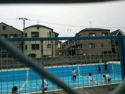 夏の水泳授業に向けて,クラブ生徒がプールの掃除をしてくれています。楽しそうです。