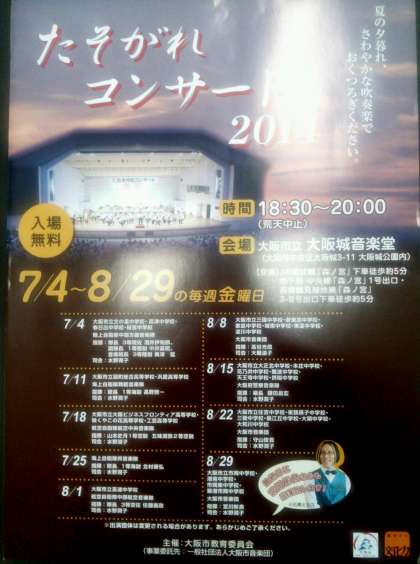 大阪城音楽堂でコンサートがあります。