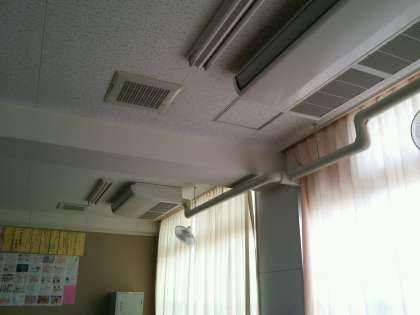 今日と明日は期末テストですが,今年度から一学年5学級となった1年生の1組にはエアコンがありません。やっと予算をつけていただいたので,今日と明日でエアコン追加工事を行います。この間1−1の生徒は,エアコンのある美術室で期末テスト受験。水曜日になれば,1−1教室にもエアコンがついているはずなので,楽しみに待っていてください。