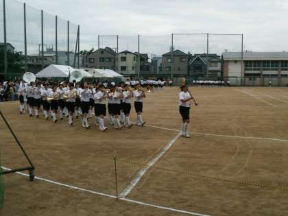 写真は入場行進の終わり。吹奏楽部の先導(写真奥)がかっこよかったです。 -