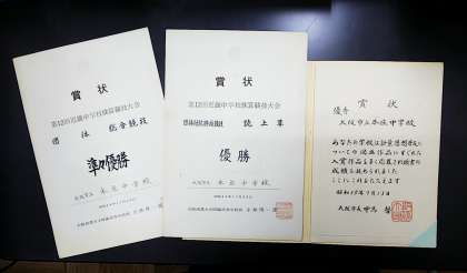 その中で最も保管年数が長かったのは、昭和44年当時の珠算大会での賞状(上記写真)です。当時は、第7代校長先生の時代で、「学校通信」なるものも残っており、当時の様子がしのばれます。現在の校長先生が第18代目でいらっしゃるので、ずいぶんと長い間眠っていたことになりますね。