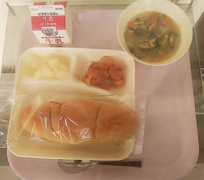 手洗い等は継続しつつも、おかずの配膳もあるので時間を今までよりも5分延長していましたが、必要なかったようです!これまでの2週間の成果か、4時間目の授業が終わると子どもたちは速やかに手洗いをし、給食の準備をしてくれたので想定よりも余裕をもって食べることができました。