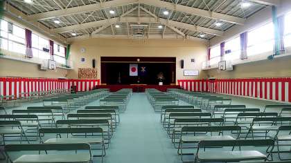 本日14時より入学式を執り行います。保護者の方は13:20〜13:40に会場である体育館へ入っていただくことができます。