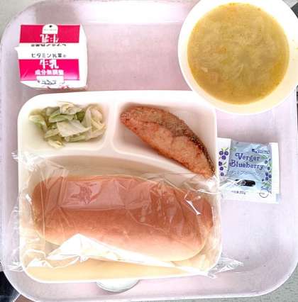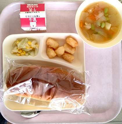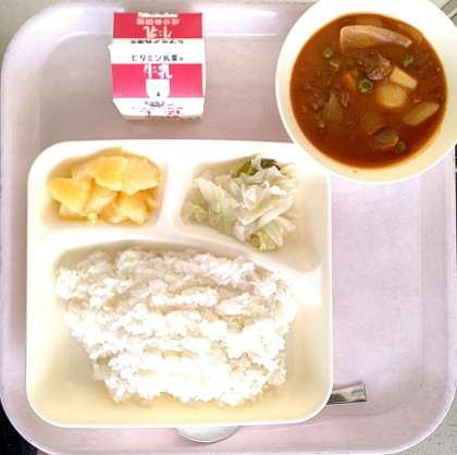 カレーライスとサラダに使われている食材が学習した食品群のどれに当たるか考えています。また不足しがちな食品群をどのように補うかについても考えています。