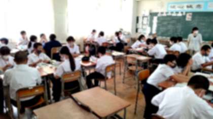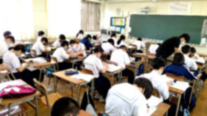 どのクラスもプリントやワークなどを使い、これまでの復習をしたり、先生に質問したりしてテスト前の追い込みモードに入っています。 -