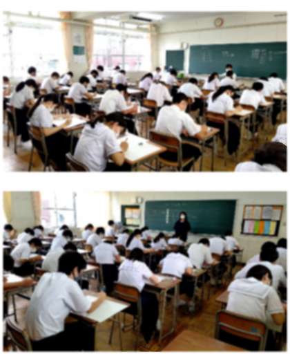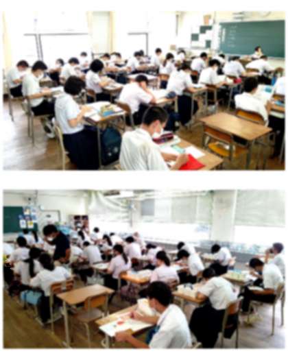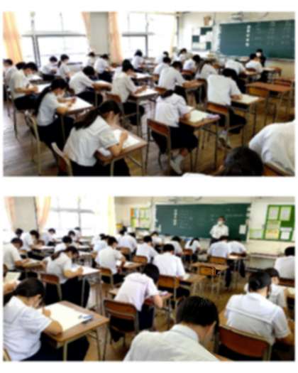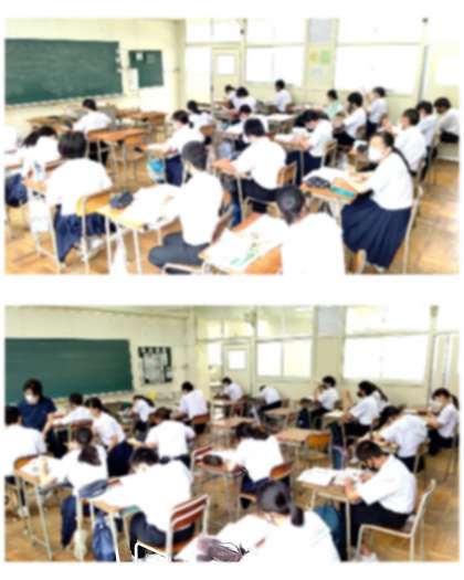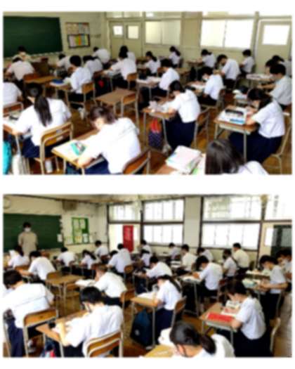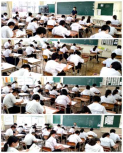 期末テスト初日を迎えました。これまでの学習の成果を出しきるべく、どの生徒も真剣にテストに取り組んでいます。 -