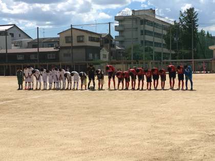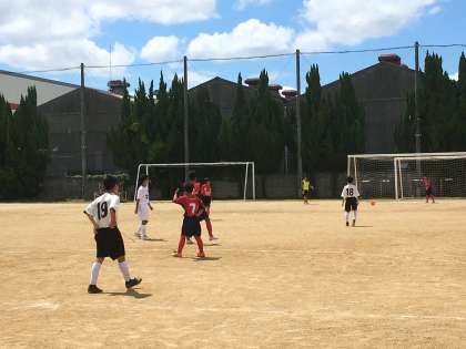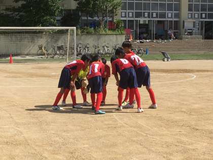 本日の夏季5ブロック 1年生大会は、東大阪朝鮮との対戦は0−6で負けました。続く勝山・巽合同チームとの対戦では、8人制の試合で、7人で臨み、3−1で勝利しました。途中からは6人での試合となり、負けもしましたが、これから個人の技術と共にチームとして成長していけるようにがんばっていきます。 -