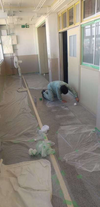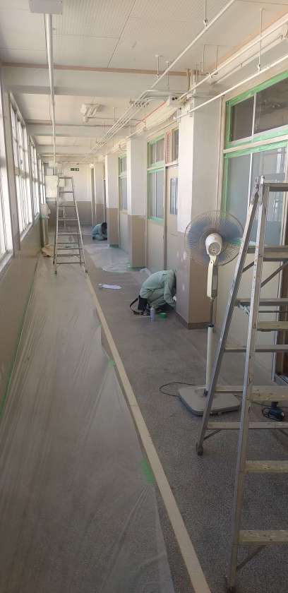 音楽室前の廊下を明日から塗装工事します。