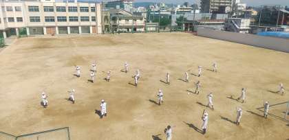2、3年生と、写真の1年生に分割して活動しています。 -