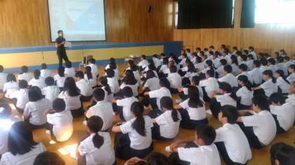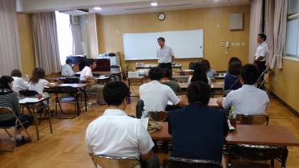 講師の先生のご講演に、生徒はとても真摯に聞き入っています。 -