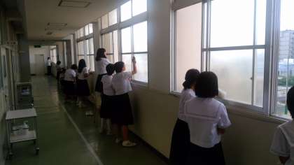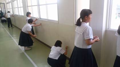 今日から校舎内清掃「ふきふきキャンペーン」がはじまりました。有志を募って水拭きをします。