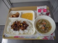 今日は、ビーフケチャップライスです。3年生にとっては、今日が中学校での最後の給食...