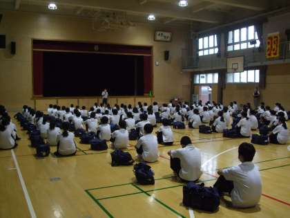 本日、1年生への部活動紹介をおこないました。新型コロナウイルスの感染予防のため、例年の2・3年生によるパフォーマンスはありませんでしたが、先生から玉津中学校の部活動の紹介がありました。明日から、1年生の仮入部が始まります。
