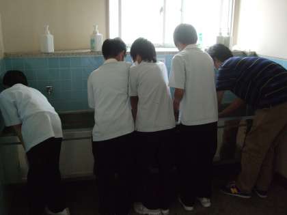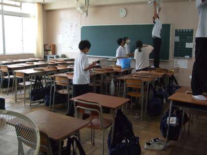 8月7日(金)、1学期もいよいよ終わりです。みんなで大清掃をおこないました。1年生の様子です。