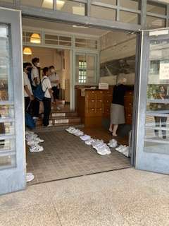 午後は市内ウォークラリーです。平和学習を班活動で行っています。