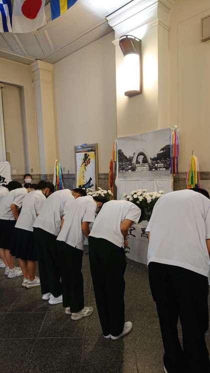 ウォークラリーの途中、旧日本銀行広島支店では、献花式に参加させていただきました!