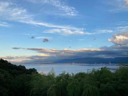 宿に到着しました。入館式の様子です。景色がとてもきれいです。