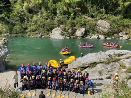 さぁ!ラフティング!曇り空が快晴に!集合写真をとって出発です!