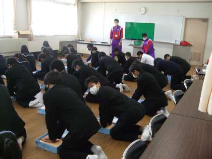 3年生は、日本赤十字の方より、救急救命法及び防災講義をいただきました。