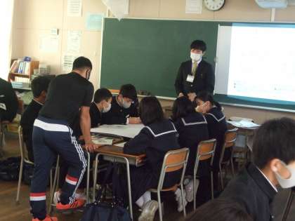 2年生は、東成区役所の方より、HUG(避難所運営ゲーム)の指導をいただきました。